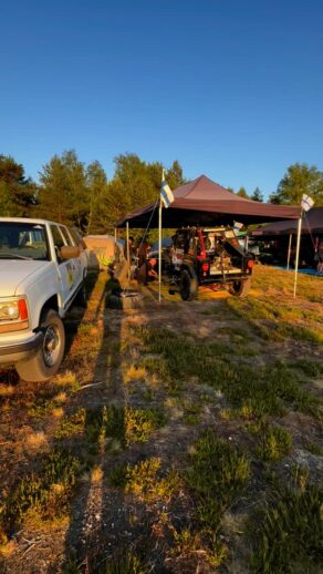 Charles Wirbergh/Hampus Rodas ja telttakatoksessa Extreme -luokan Jeep Wrangler TJ.